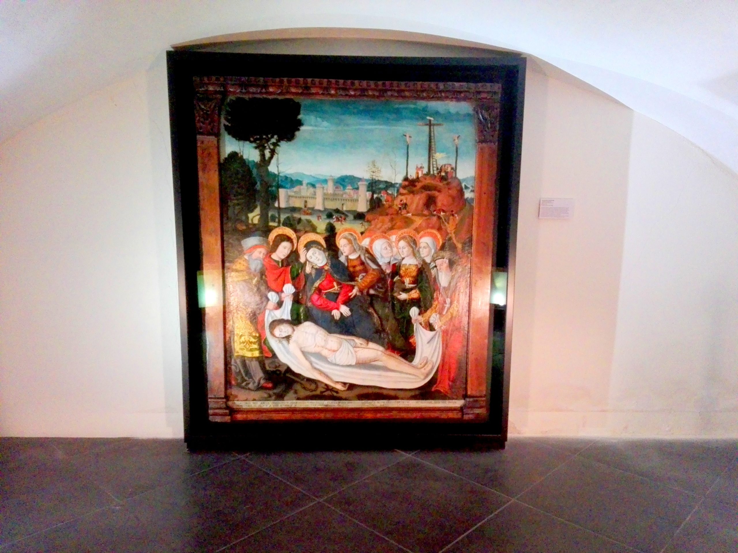 Z boku znajduje się niskie pomieszczenie w którym znajduje się parę obrazy malarstwa sakralnego .