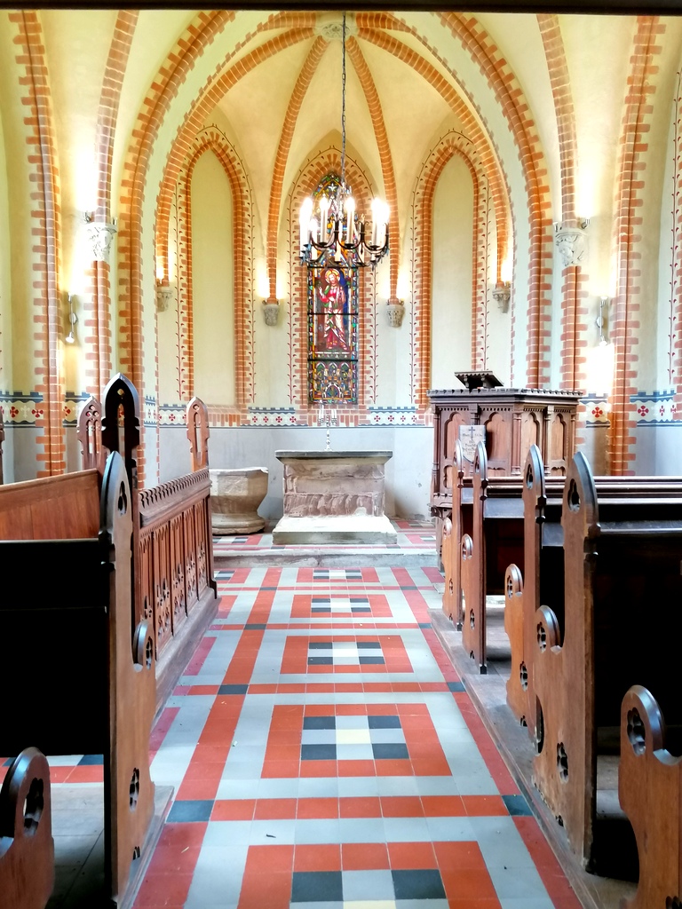Do zamku należy park pochodzący z XVIII wieku i ma cechy angielskiego ogrodu krajobrazowego. Neogotycka kaplica zamkowa z 1893 roku znajduje się zaraz niedaleko zamku w parku. Odnajdziemy tam mały rodzinny cmentarz przy kaplicy.