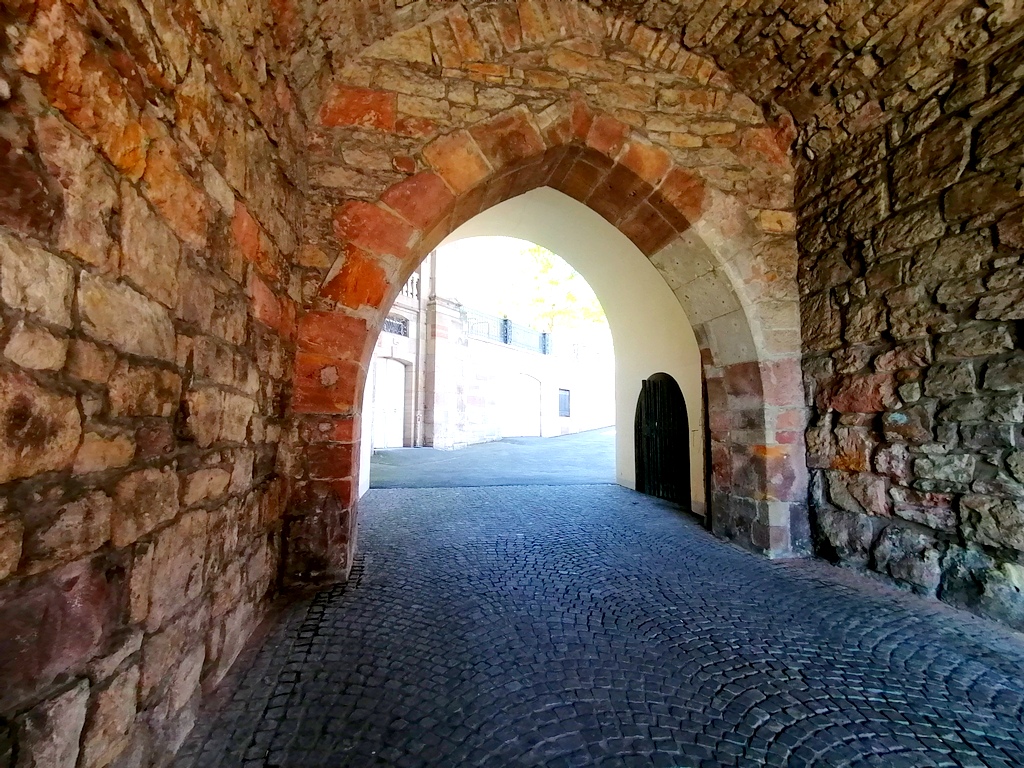 Natomiast gdy w 2000 roku wyburzano stary sklep owocowy na rogu Friedrichsplatz i Obere Karlsstraße odkryto początki domów przy Friedrichsplatz 7 i 8, piwnice z piaskowca ze sklepieniami i łukowatymi cegłami .</p>