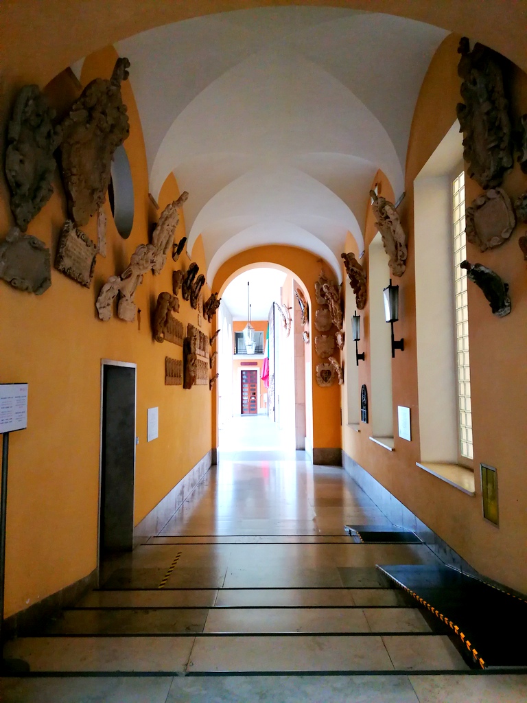 Budowę tego wspaniałego dziedzińca rozpoczęto w 1547 roku pod czujnym okiem architekta Andrea Moroniego z Bergamo. Dziedziniec otoczony kolumnami, ozdobionych freskami i kamieniem. Znajduje się tam tysiące heraldycznych herbów.