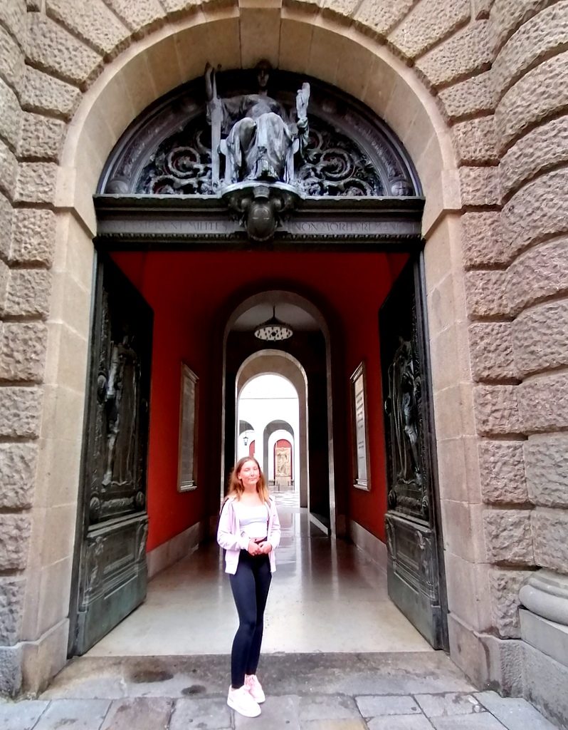 Wejście do Uniwersytetu zdobią olbrzymie , masywne drzwi.