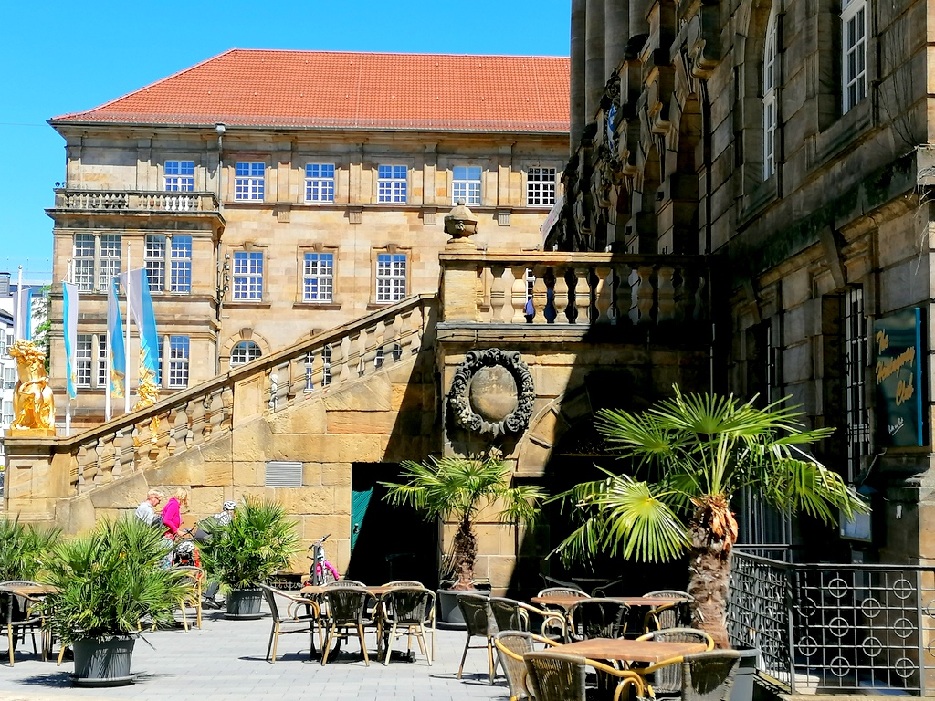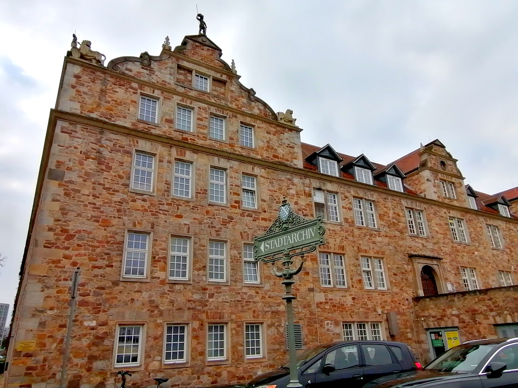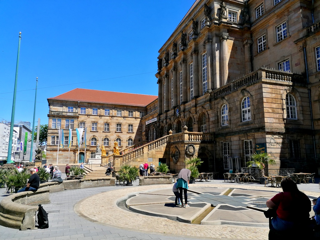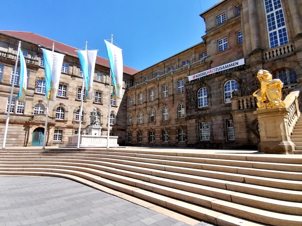 Ten okazały budynek ma ponad 100-letnią historię. Po obu stronach zewnętrznej klatki schodowej wzniesiono dwa pozłacane lwy heskie, a nad głównym portalem umieszczono herb miasta Kassel.