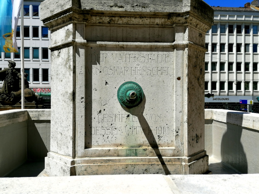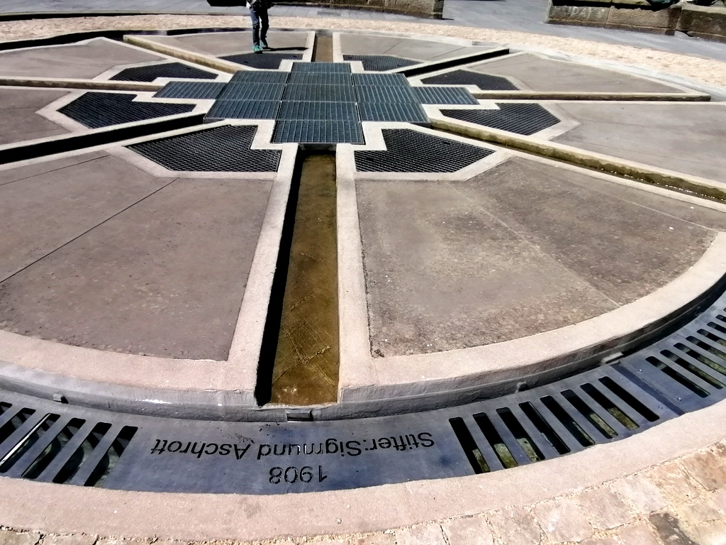 Przedsiębiorca z Kassel Sigmund Aschrott podarował 12-metrową fontannę zbudowaną w 1908 roku na dziedzińcu ratusza. To jemu miasto Kassel zawdzięcza swój rozwój urbanistyczny.W dniu w którym II wojna światowa rozpoczęła się wrześniowym atakiem na Polskę działacze narodowosocjalistyczni zburzyli Judenbrunnen ponieważ Zygmunt Aschrott był Żydem. W 1987 roku w tym samym miejscu wybudowano nową fontannę.