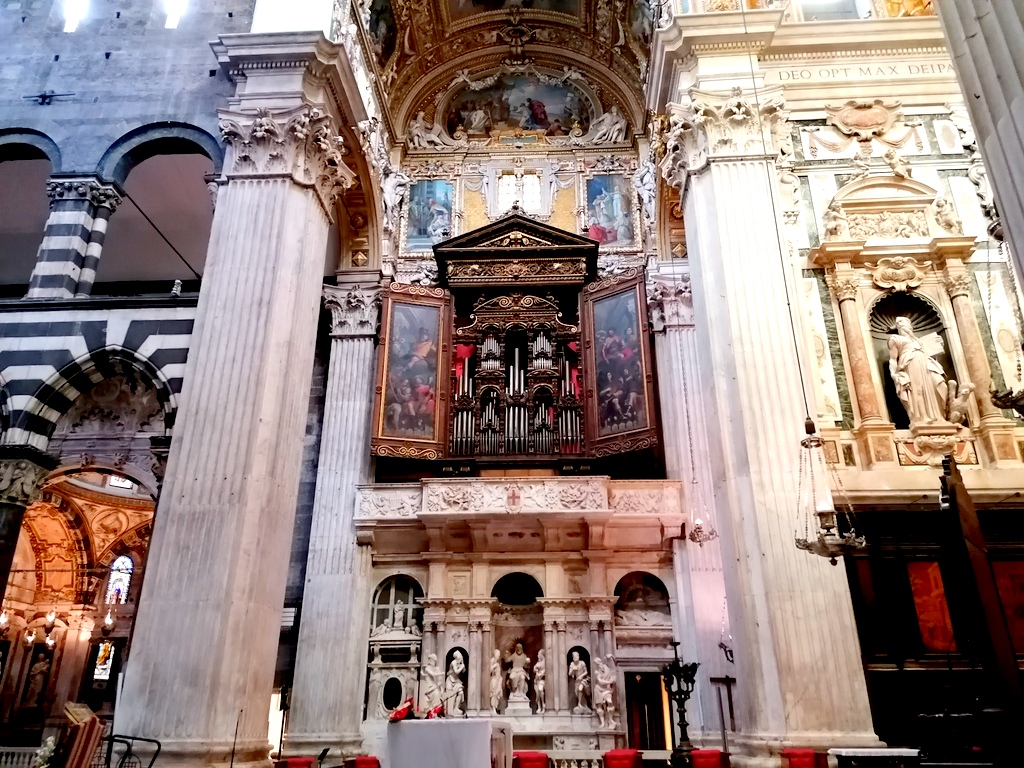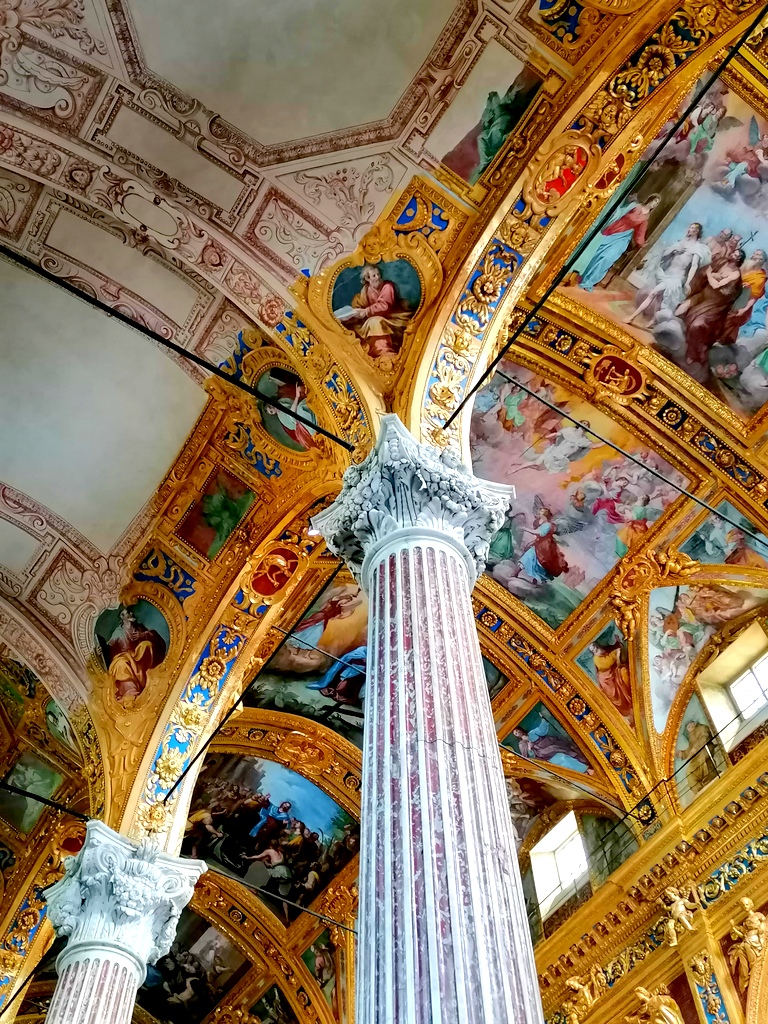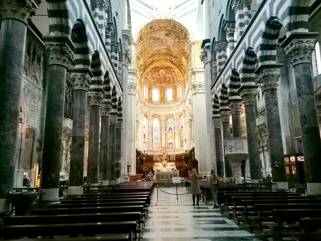 Docieramy tak naprawdę do Chiesa della Santissima Annunziata del Vastato przez historyczną ulicę Via Balbi. Wnętrze bazyliki jest olśniewające, bogato zdiobione złotem i wieloma malowidłami i freskami. We wnętrzu znajdują się obrazy namalowane przez czołowych malarzy genueńskich tamtego czasu. Lista dzieł jest naprwdę imponująca.