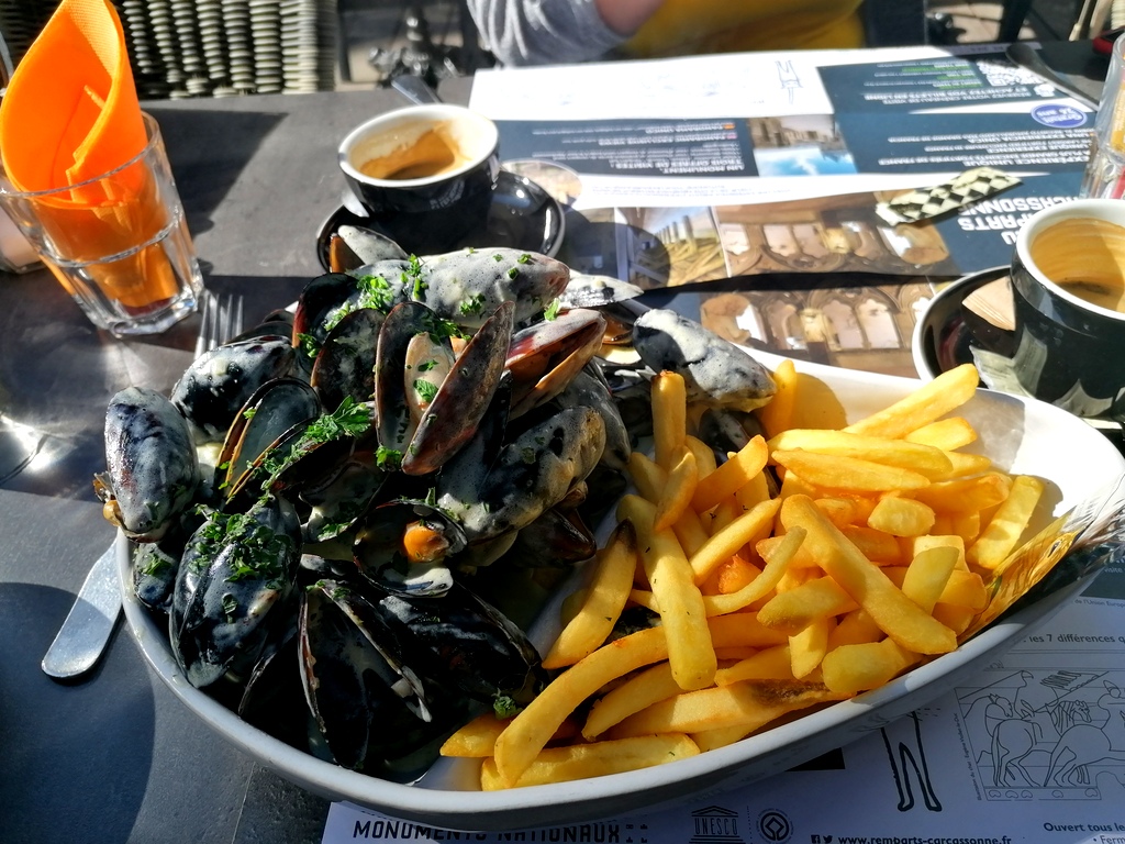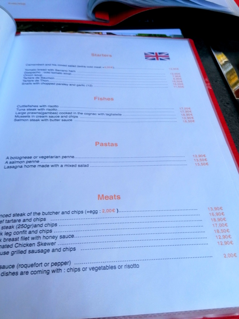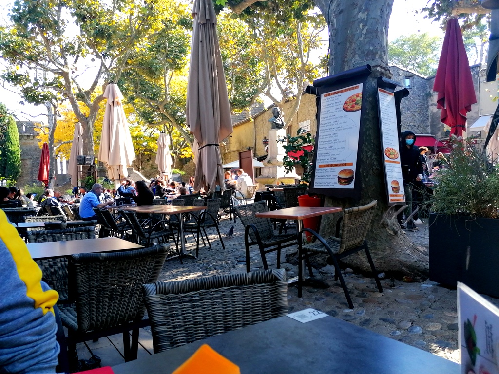 W samym środku średniowiecznego miasteczka znajdziemy miejsce gdzie aznajduje się kilkanaście knajpek i restauracji. Skorzystaliśmy oczywiście z jednej z nich La Grande Brasserie siadając po prostu tam gdzie udało się znaleść wolne miejce . Jak na październik było bardzo dużo turystów.