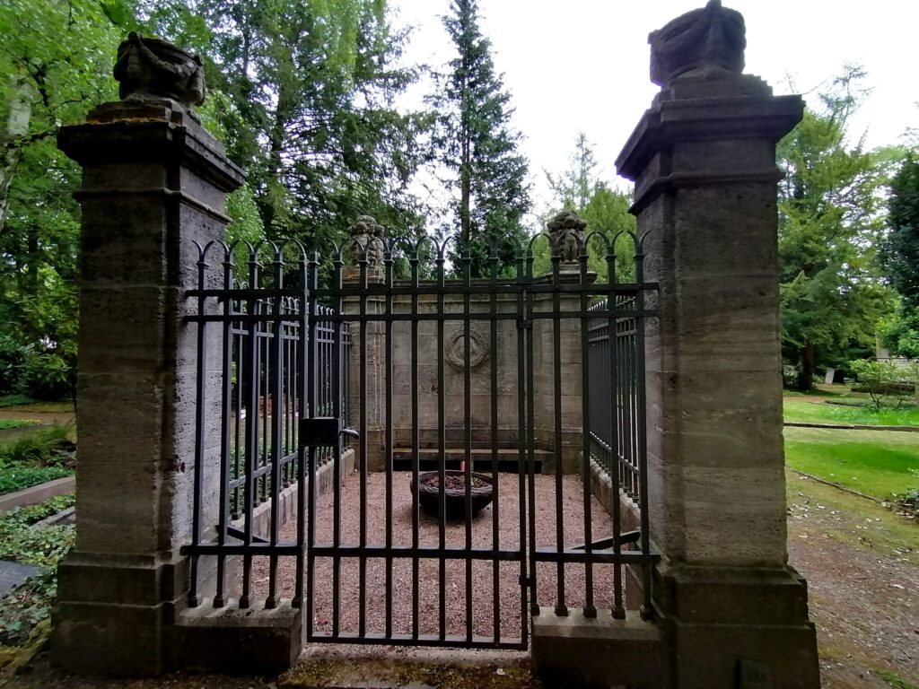 Pierwszym bardzo waznym grobem jest grób GERTRUDE VON HANAU żony ostatniego elektora Hesji, Fryderyka Wilhelma I. Książę uczynił ją Hrabiną Schaumburg a została księżną Hanau i Hořowitz poślubiając Fryderyka Wilhelma I Hesji, ostatniego elektora Hesji -Kassel. Gertruda (z domu Falkenstein ) urodziła się w Bonn 18 maja 1803 roku jako córka aptekarza ,wyszła za mąż za pruskiego porucznika Karla Michaela Lehmanna z którym miała dwóch synów. Jej związek sie jednak rozpadł a dzieci zostały z nią .