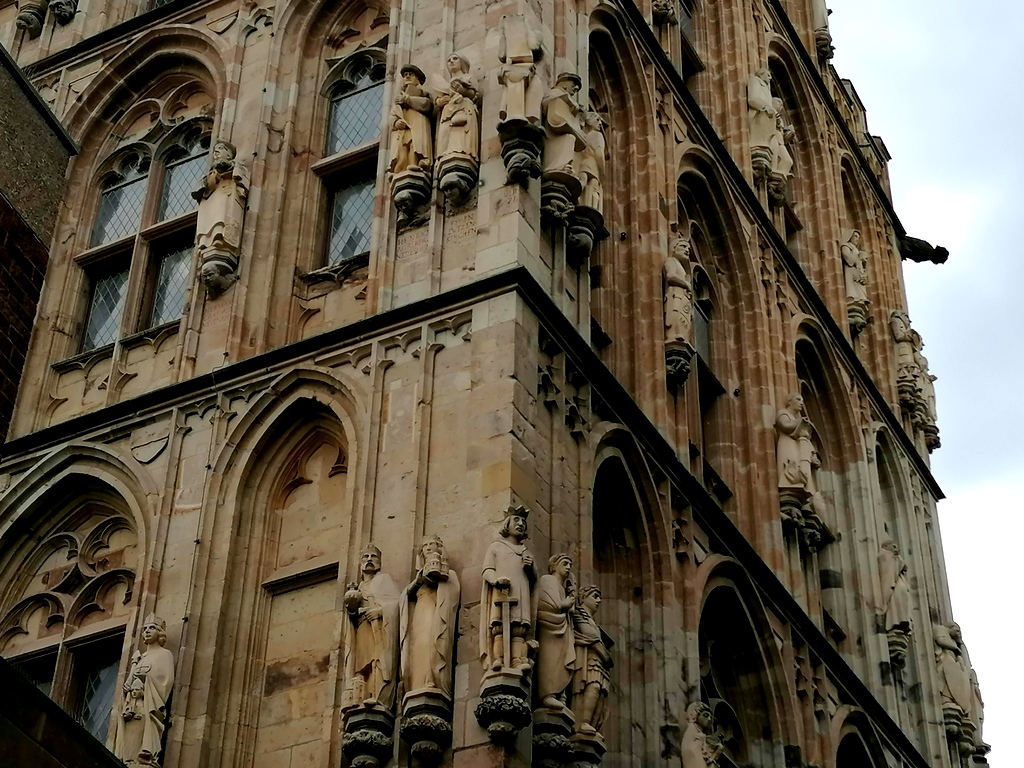 Na wieży ratusza znajduje się 130 kamiennych figur. Budowla składa się z kilku części w tym pierwsza z XIV wieku zwana jako Saalbau czyli zadaszona hala ma aż długość 30 metrów i wysokość praiw 10 metrów .Następna część to wieża z początku XV wieku i Loggia.