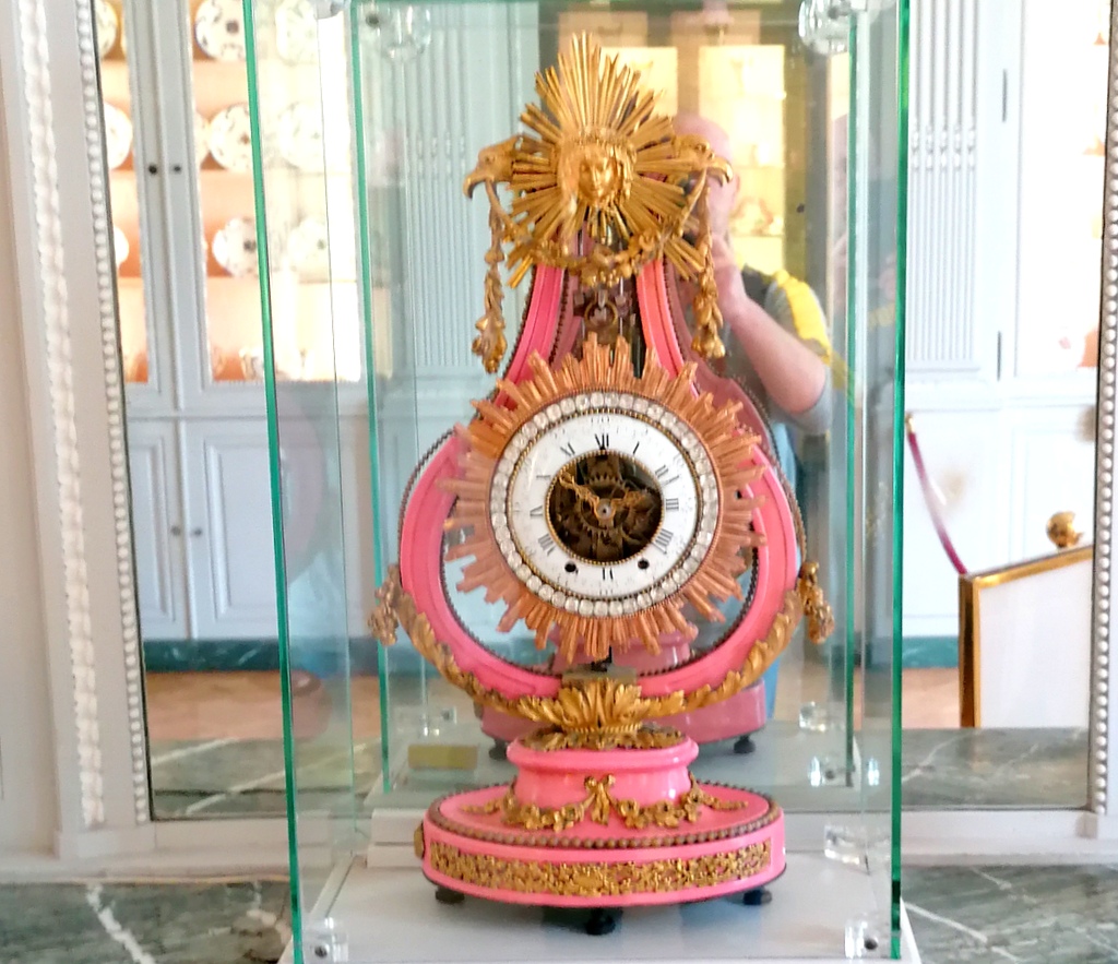 Dekoracje ścienne, rzeźby z pozłacanego brązu,wspaniałe zegary, piękne świeczniki i kinkiety ścienne. Detale na które warto zwrócić uwagę, wszystkie materiały zdobnicze i samo wyposażenie jest na najwyższym poziomie i godne samej rodziny królewskiej. Warto wspomnieć,że znajdują się tu meble należące kiedyś do samej austriackiej arcyksiężniczki Marii Antoniny.