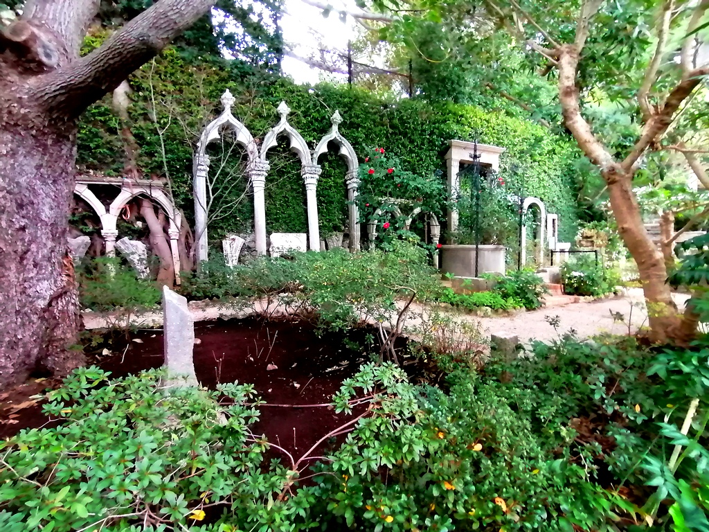 Ogród kamienny (lapidarium)sgdzie znajdują się kamienne elementy architektury ,rzeźb ,płyt nagrobnych czy kolumn oraz z monstrualnymi gargulcami. Dodatkowo ogród różany i prowansalski które najlepiej prezetują się w innych porach roku.